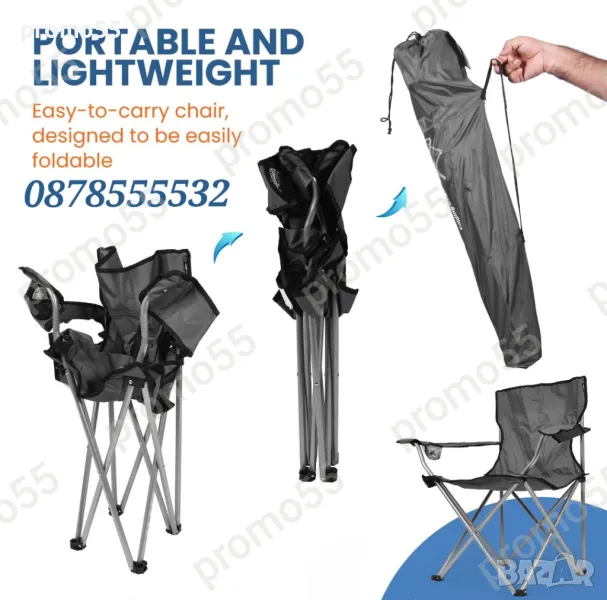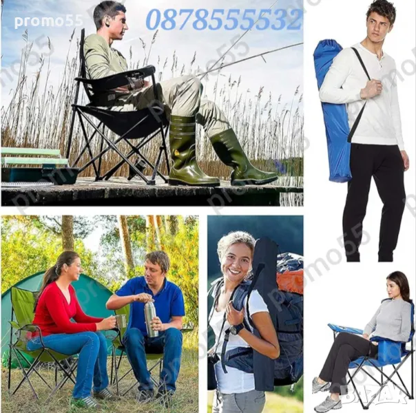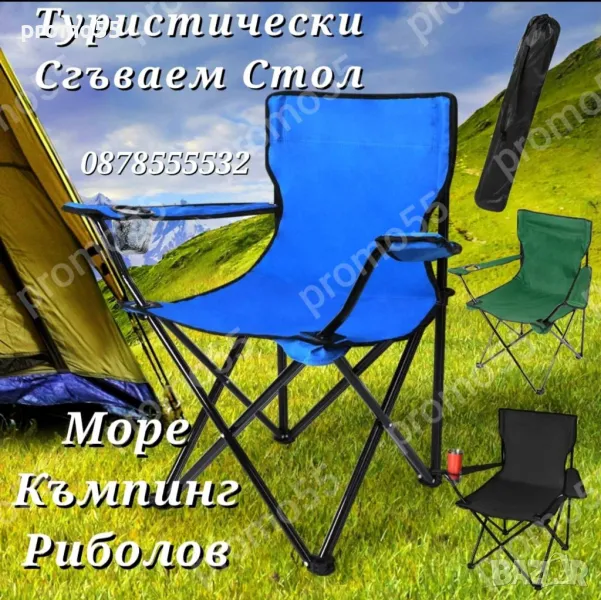 Преносим сгъваем стол. Удобно столче за преходи, планина, плаж, къмпинг, пикник и риболов.