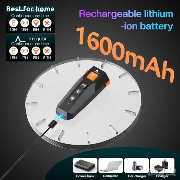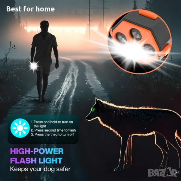 Гъвкав за всякакви условия: Независимо дали се използва като репелент за кучета на открито или като вътрешно устройство против лай, този инструмент се адаптира към всяка среда. Страхотен за осигуряване на спокойствие в обществени или частни пространства.