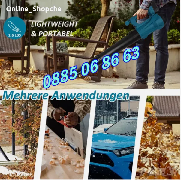 - Скорост на въздушната струя: до 270 км/ч – ефективно премахва листа, прах и дребни замърсявания.