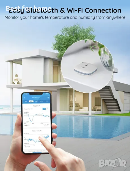 Бърз и точен: Оборудван със сензор, произведен в Швейцария, този WiFi термометър осигурява прецизни показания. Температурата е с точност до ±0,54℉/±0,3℃, а влажността е ±3%RH. Като опреснявате на всеки 2 секунди, ще бъдете редовно актуализирани. Вече поддържа функция за джаджи.