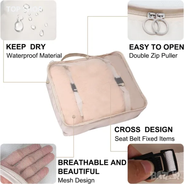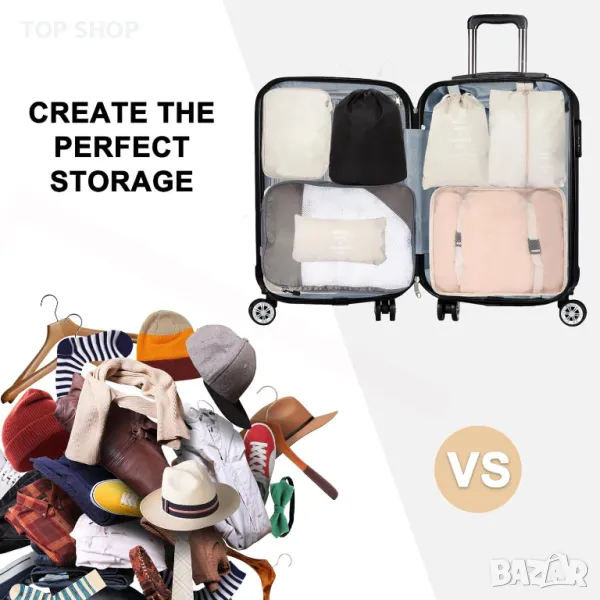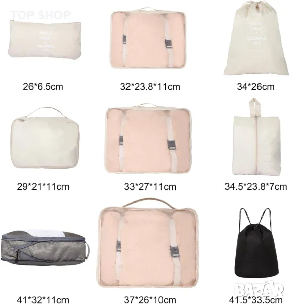 Комплектът опаковъчни кубчета от 10 части предлага изключителна стойност, включващ 4 обикновени кубчета, 1 компресионен куб, 3 торби с шнур, 1 чанта за обувки и 1 чанта с цип, адаптивни към различни размери багаж, включително 50, 60 и 70 см. Тези кубчета се предлагат в различни размери, дизайни и цветове, което позволява ефективно организиране на дрехите и обувките и осигурява отделянето на сухи, мокри, чисти и мръсни предмети. Това улеснява категоризирането на вещи по отделни лица. Компресионният опаковъчен куб е проектиран да спести място в багажа ви, като компресира дрехите, за да минимизира обема. Обикновените кубове осигуряват универсални решения за съхранение на всички останали предмети. Идеални за множество сценарии, тези опаковъчни кубове са идеални за семейни ваканции, бизнес пътувания, приключения на открито или дори домашна организация, позволявайки ефективно управление на гардероба. Изработени от издръжлив плат, тези кубове са създадени да издържат на много пътувания, опростяват процесите на опаковане и разопаковане и осигуряват бърз достъп до вашите вещи, подобрявайки цялостното изживяване при пътуване.
