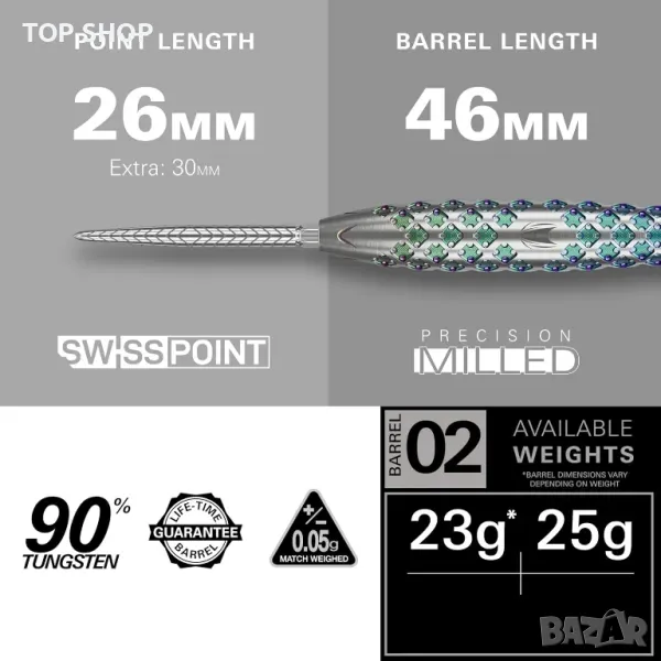 Дартс TARGET Rove, 90% волфрамов комплект, Barrel 02, 25 гр