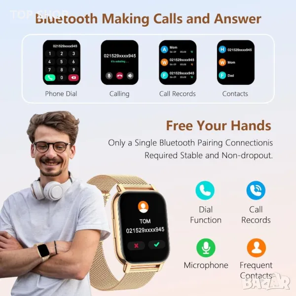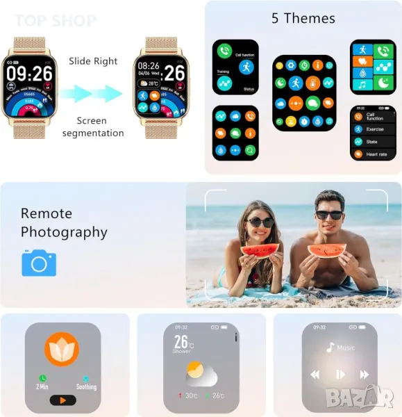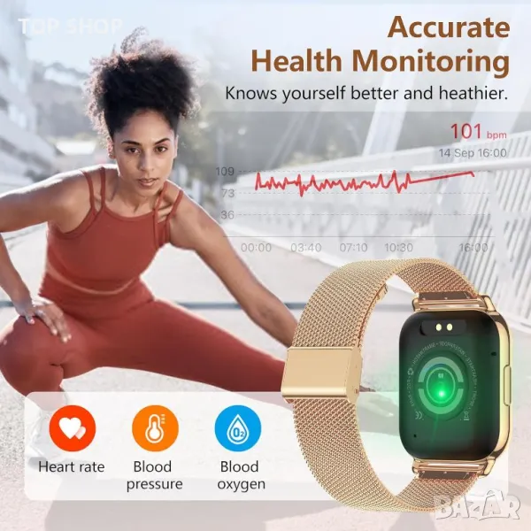Смарт часовник Narcid 1,85" инча, приемане на повикване/набиране, SpO2 монитор за сърдечен ритъм/сън