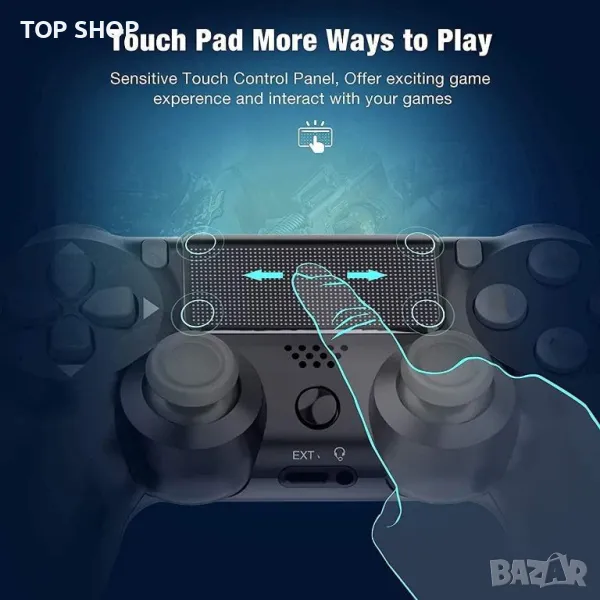 Безжичният контролер PS-4, оборудван с усъвършенстван чип, идентичен с оригинала, осигурява безпроблемно, бързо реагиращо игрово изживяване без забавяне или забавяне. Разполага с вградена акумулаторна батерия, която се зарежда само за 2,5 часа и осигурява до 10 часа игра. Ергономичният дизайн с матов, неплъзгащ се материал осигурява комфорт и ефективна устойчивост на изпотяване по време на дълги игрални сесии. Подобрен с вградени двигатели, тъчпад и 6-осен сензор, той осигурява реалистични вибрации и разпознаване на движение в различни игри. Освен това той поддържа както безжични, така и кабелни връзки и включва високоговорител и 3,5 мм стерео жак за потапящо аудио изживяване. Тъчпадът на контролера и интегрираната светлинна лента въвеждат нови интерактивни възможности за игри.