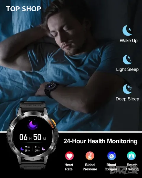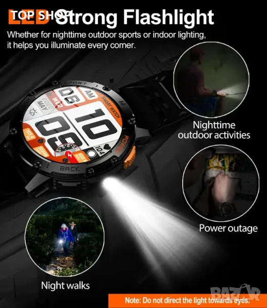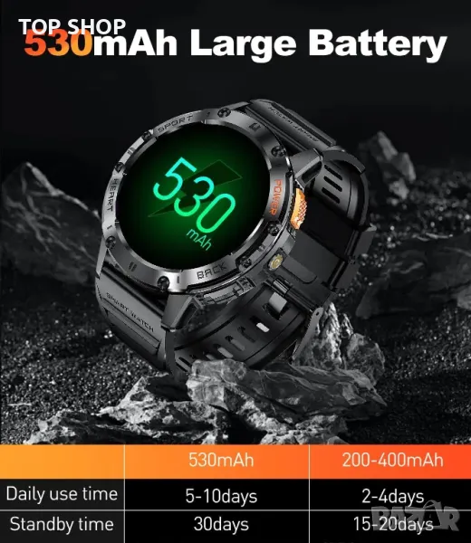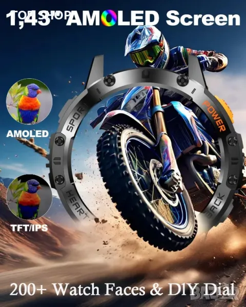 Смарт часовник за мъже, 530mAh батерия, 1,43" AMOLED дисплей, LED фенерче, Bluetooth разговор, IP68