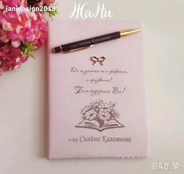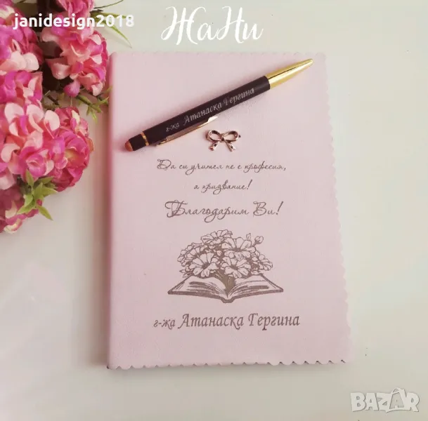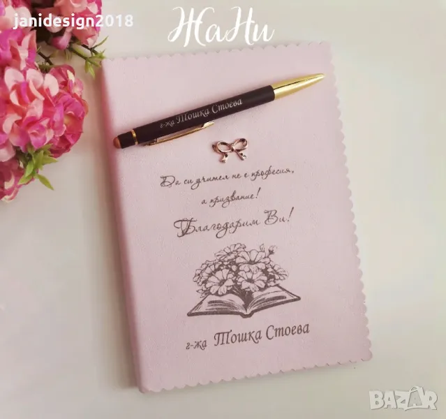 Подаръчен комплект за учител гравирани тефтер и химикал → Обява 49629554