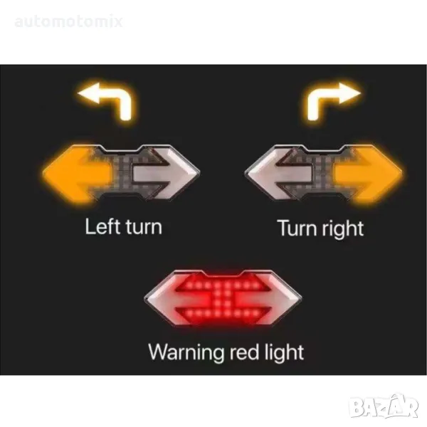 Висококачествена изработка и ясно видими сигнали /ляво мигач,дясно мигач,габарит и премигващ габарит със 2 функции - 1.бърза 2.бавна/.