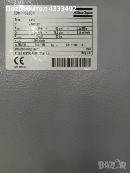 Винтов компресор Atlas Copco, снимка 1 - Хидравлични и пневматични чукове - 49631699 Винтов компресор Atlas Copco, снимка 2 - Хидравлични и пневматични чукове - 49631699 Винтов компресор Atlas Copco, снимка 3 - Хидравлични и пневматични чукове - 49631699 Винтов компресор Atlas Copco, снимка 4 - Хидравлични и пневматични чукове - 49631699 Винтов компресор Atlas Copco, снимка 5 - Хидравлични и пневматични чукове - 49631699 Винтов компресор Atlas Copco, снимка 6 - Хидравлични и пневматични чукове - 49631699 1/6