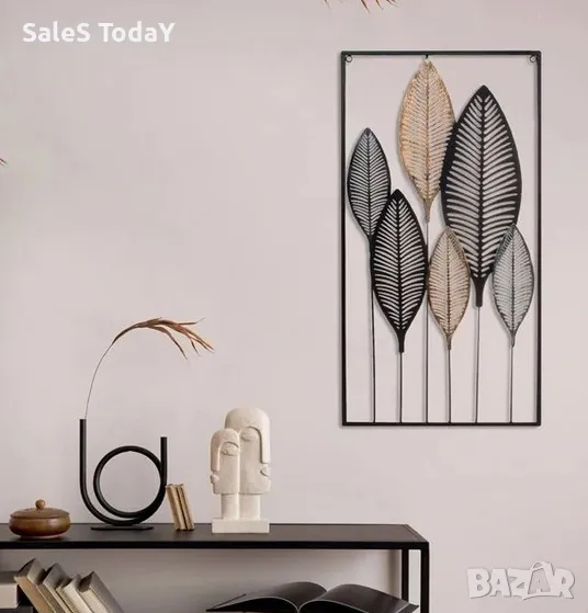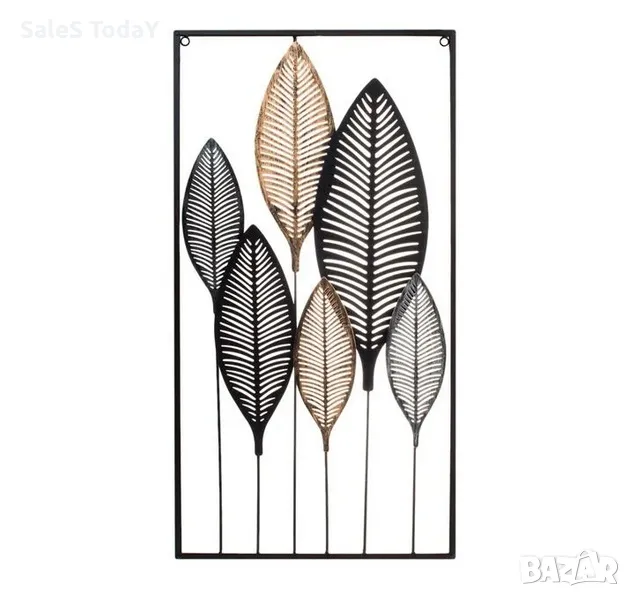 Стенна метална рамка с перфорирани крила в черен, сребрист и бронзов цвят, в черна рамка. Монтира се с 2 метални опори от задната страна.