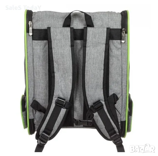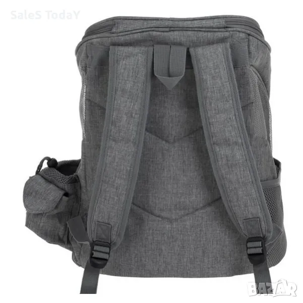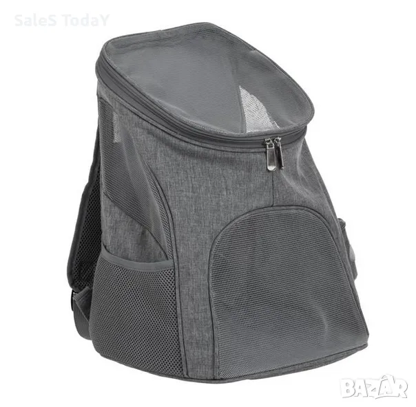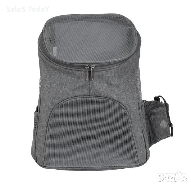 Раница за носене на домашни любимци с дръжка, в сив цвят с 1 голям страничен джоб с мрежа от едната страна и 2 малки с копчета и цип, за съхранение на всички необходими аксесоари и с вградена каишка, която се прикрепя към нашийника за фиксиране на домашния любимец. Той е стабилен, тъй като поддържа формата си, осигурявайки удобна и просторна среда за вашите космати приятели. Има мрежа, която позволява на въздуха да циркулира и голям отвор, за да може вашият домашен любимец да гледа навън. Подходяща е за малки/средни домашни любимци до 6 кг.