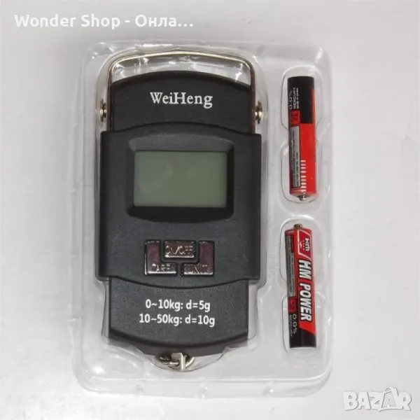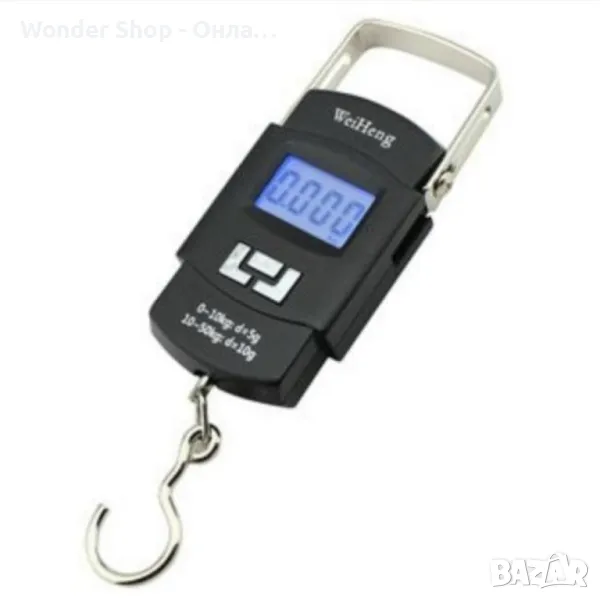Малка и много компактна електрическа везна с възможност за измерване на товари до 50 кг. Здрава метална кука от неръждаема стомана с висока якост и цифров LCD дисплей, показващ тежестта на измервания товар. Ергономичен дизайн и лесна за използване.
