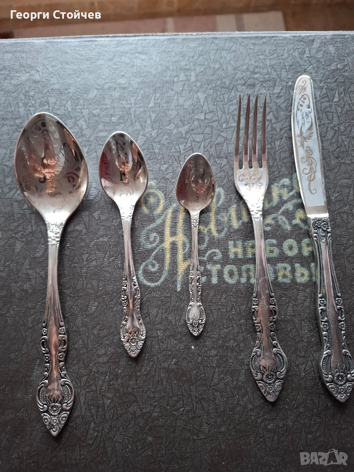 Продавам комплект прибори с гравюра на Жар птица на всеки прибор