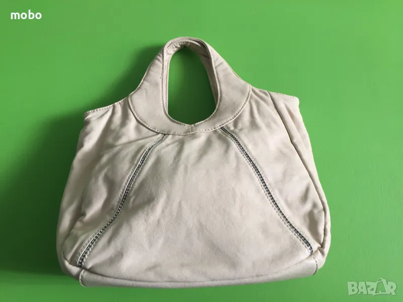 Дамска бежова малка чанта от естествена кожа, марка OLIVER WEBER – COLLECTION, с кристали Swarovski, три отделения, с вътрешен джоб, затваряне с магнитно