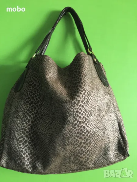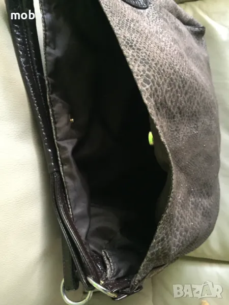 Дамска кафява чанта/ тип змийски принт / от водоустойчива промазка