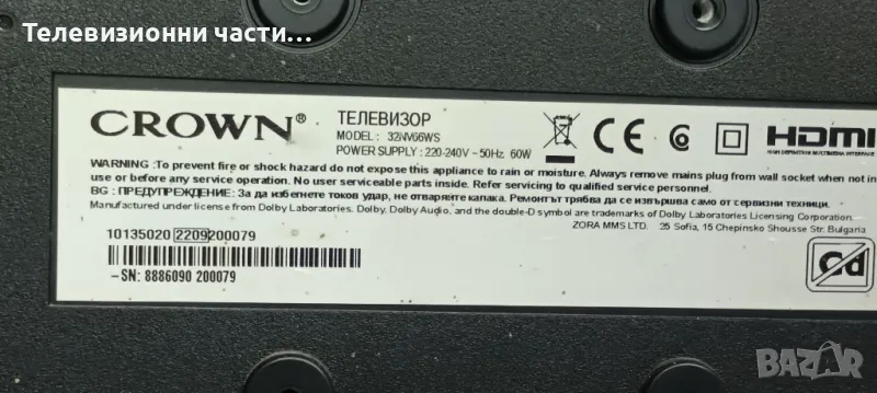 Crown 32NV66WS със счупен екран VES315WNGB-L4-N91 HV320WHB-F70/17MB181 180521R4/17IPS63 140921R3A