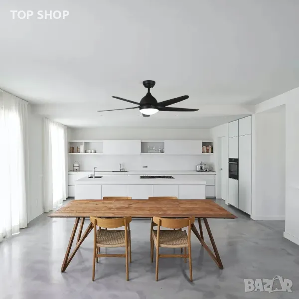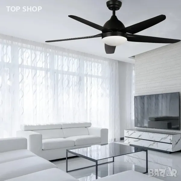 Таванен вентилатор FINXIN с лампа, дистанционно (132 см,черен,5 перки)