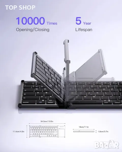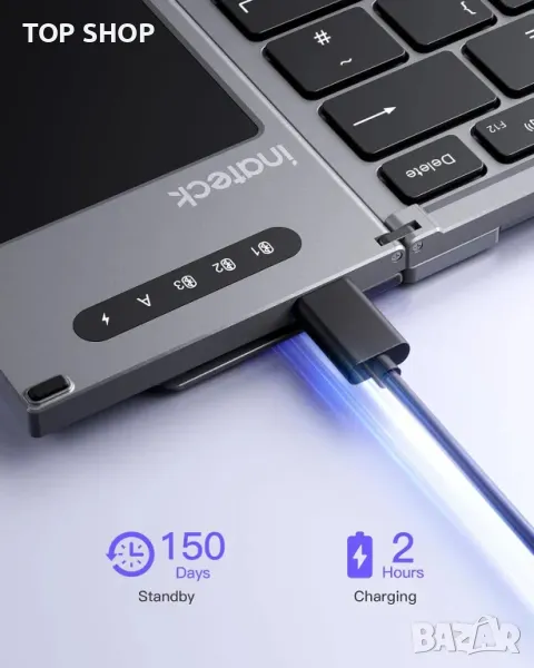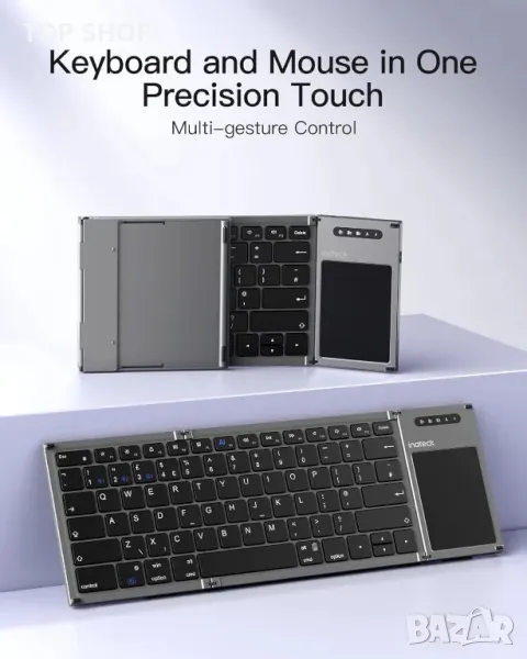 Сгъваема Bluetooth клавиатура Inateck, AI Wireless с тъчпад, 3 Bluetooth канала, iOS Android Windows
