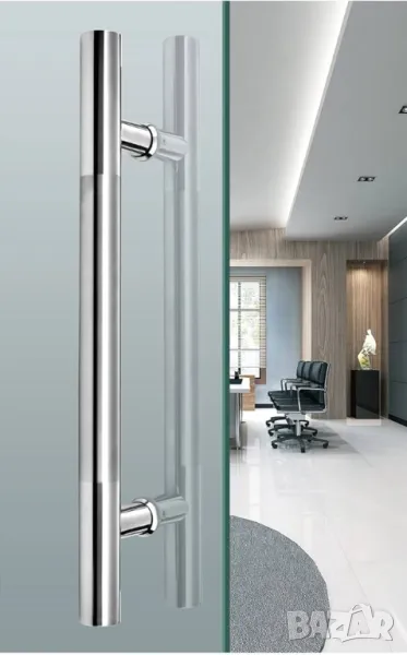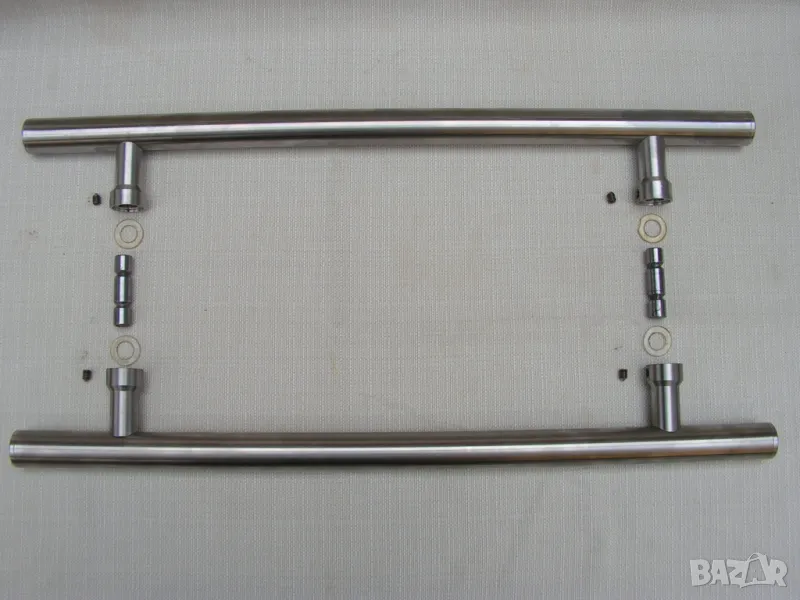 Предлагам два комплекта двустранни дръжки с две опори за дърпане и бутане на стъклена или плътна врата. Дръжките са произведени от ABD Asset – Полша. Дръжките са монтирани и точно след 5 дни
