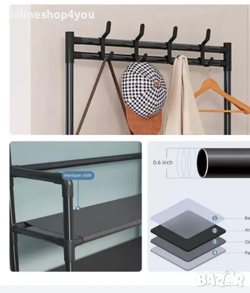 Мултифункционална етажерка със закачалки и рафтове за обувки → Обява 49637283