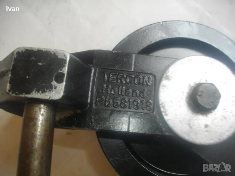 Масивен Тръбогиб размер за огъване на тръба - 12мм-15 мм. Съвсем нов, неизползван и неупотребяван. В отлично работно състояние Тръбогиба огъва всякакви тръби - меки, полутвърди и твърди. Холандско оригиналон професионално произовдство, упоменато на маркировките - HOLLAND. Марка и модел на инструмента - TERCON Pb581918. Тръбогиба е с възможност за цялостно отваряне и огъване в радиус при градуси 45-90 градуса. Радиус на огъване - 60 мм. /половината разстояние от средата на главата кръг за огъване/. Масивни стоманени дръжки тръби - едната е снемаща се на резба. Цялостна дължина на Тръбогиба - 550 мм, ширина при главата - 210 мм. Наличие на ролков стоманен водач при огъване на тръба. Покрития на дръжките при захвата на ръката. Възможност за сменяема глава - главата и двете рамена са захваната общо с болт и подлежат на смяна или ремонт.