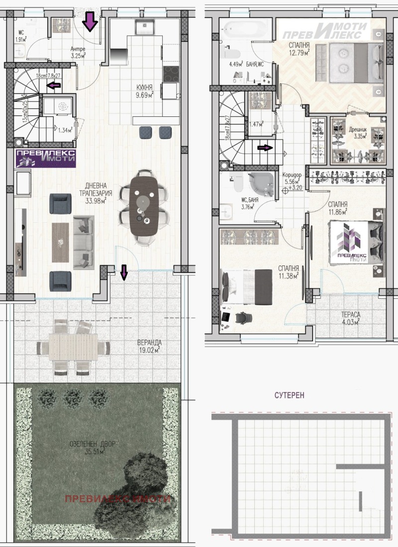Оферта 1-6464. Предлагаме Ви градска 'редова' къща в затворен комплекс, с 3 спални и собствен зелен оазис. Квартал с ниско строителство и бърз достъп до главна пътна артерия и обществен транспорт. В близост има търговски комплекси, заведения за хранене, аптека и др. Разпределението на първия етаж включва дневна с трапезария и кухненски бокс, от която се излиза на веранда и собствено дворно пространство, антре и мокро помещение. На втория етаж са разположени родителска спалня със самостоятелна баня с тоалетна и дрешник, още две спални с обща баня и тераса. Къщата има сутеренен етаж, който може да бъде обособен според нуждите на бъдещия собственик в жилищни помещения, фитнес, сауна, кабинети и др. Изложението на къщата е изток/запад. Възможност за закупуване на гараж или парко-място. Доказал се във времето инвеститор с много завършени сгради. Степен на завършване по БДС стандарт: стени и таван - шпакловка, под - циментова замазка, ВиК до тапа, ел. инсталация до фасунга и ключ, PVC дограма, завършени тераси с гранитогрес и парапет. Луксозно завършени общи части - вътрешни и външни парапети, блиндирана входна, вътрешни интериорни врати, контролиран достъп и електрически безшумен асансьор. Препоръчваме това жилище при избора Ви на нов дом или като подходящ инвестиционен инструмент. Гарантираме, че ще получите необходимото внимание и компетентно съдействие. Ние ще Ви предложим професионално отношение и чрез индивидуален подход ще се стремим да бъдем максимално полезни в търсене на най-доброто решение за Вас. Работим с голям кръг от инвеститори, строители и колеги и се стремим да покрием с максимално изчерпателна информация и оферти зададените от Вас критерии. Съдействаме за получаване на ипотечен кредит за имота, който сте избрали, при най-добри условия за купувача. За повече подробности, проект или оглед сме на разположение на посочения телефон.