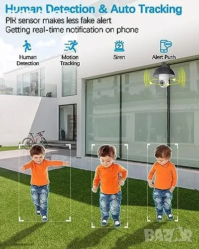 Интелигентно разпознаване на движение със сирена и прожектор.