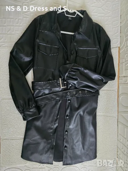 Дълга кожена риза рокля с колан → Обява 49638951