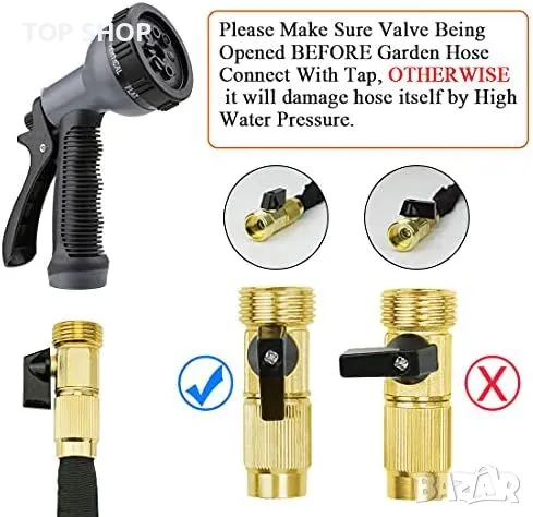 Нов Многофункционален Разтегаем Градински Маркуч 30м с Месингови Фитинги