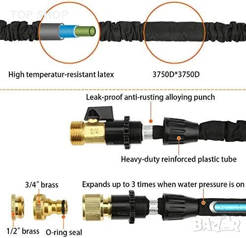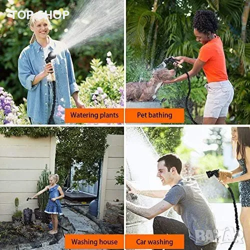 Нов Многофункционален Разтегаем Градински Маркуч 30м с Месингови Фитинги → Обява 49639483
