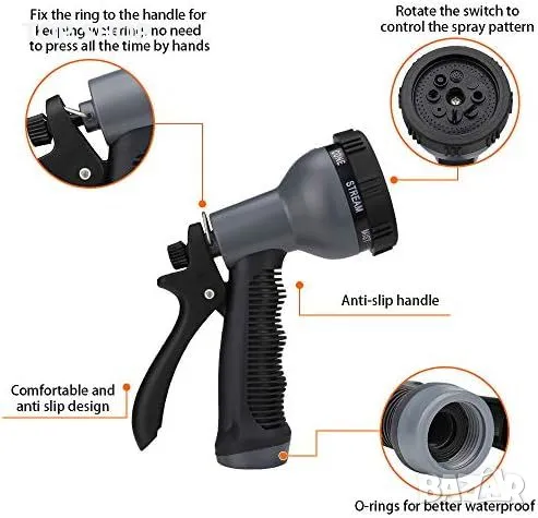 8-функционален спрей накрайник: за различни нужди - от поливане до миене на автомобил