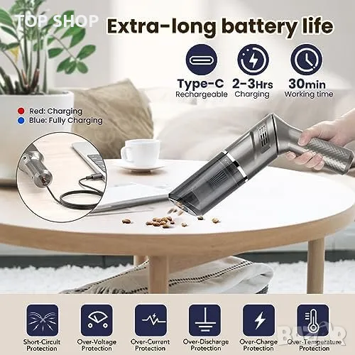 Нова Универсална Прахосмукачка Ръчен Вакуум 120W - Лек, Удобен, Мултифункционален