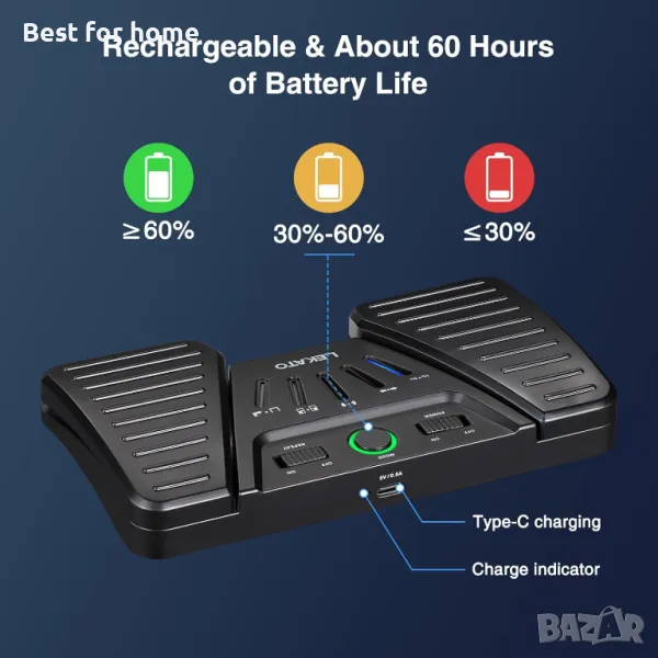 Акумулаторна и 60-часова работа: Вградена дълготрайна акумулаторна батерия. Можете да презаредите педала по всяко време с Type-C кабел и той може да се използва непрекъснато до 60 часа след пълно зареждане.