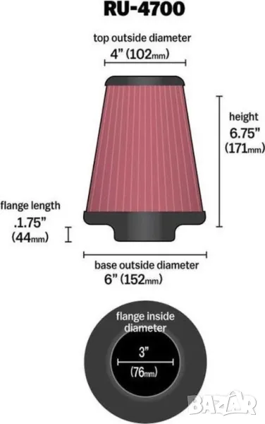 Входящ диаметър на филтъра: 76мм