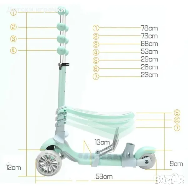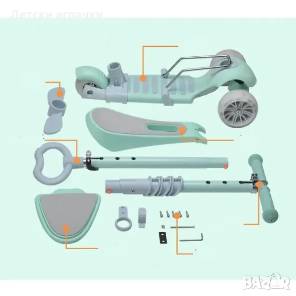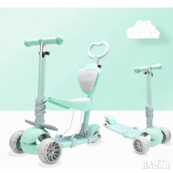 Тротинетка 5в1 с поставка за крачета, родителски контрол, широки гуми
