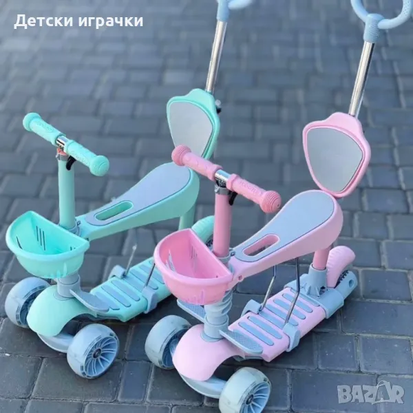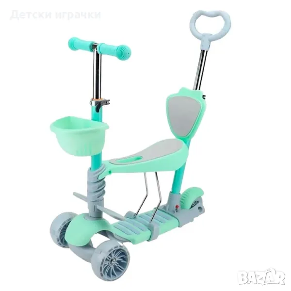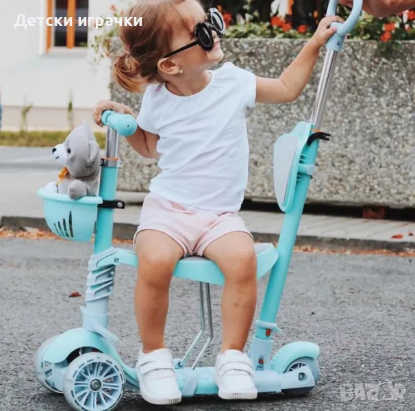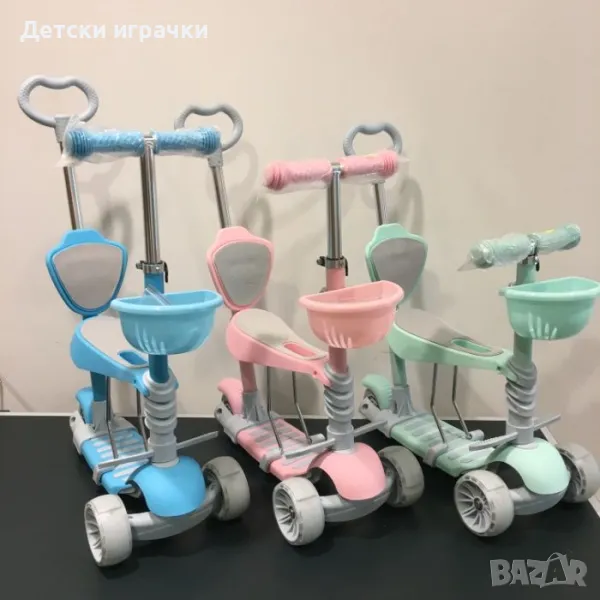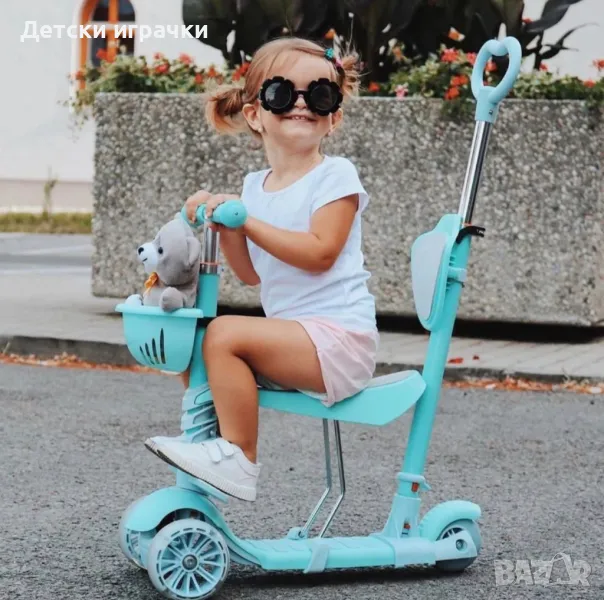 Регулируема детска тротинетка с кош 5в1 с 3 колела, LED светлини, +2 години.