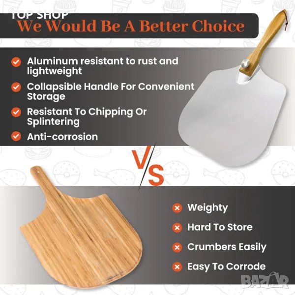 Първокласен комплект за пица "всичко в едно", висококачествена алуминиева кора, скрепер и четка за перфектно изживяване при правене на пица. Изработена от издръжлив алуминий, 30x36 сантиметра кора осигурява дълготрайност и надеждност както за домашни готвачи, така и за професионални готвачи. Неговата сгъваема дръжка подобрява удобството при съхранение без компромис с качеството. Гъвкав и надежден, той е подходящ за всяка кухня, независимо дали у дома или в оживена пицария. Почистването е лесно с лесен за избърсване дизайн, безопасен за съдомиялна машина, елиминиращ неприятното почистване на остатъците.
