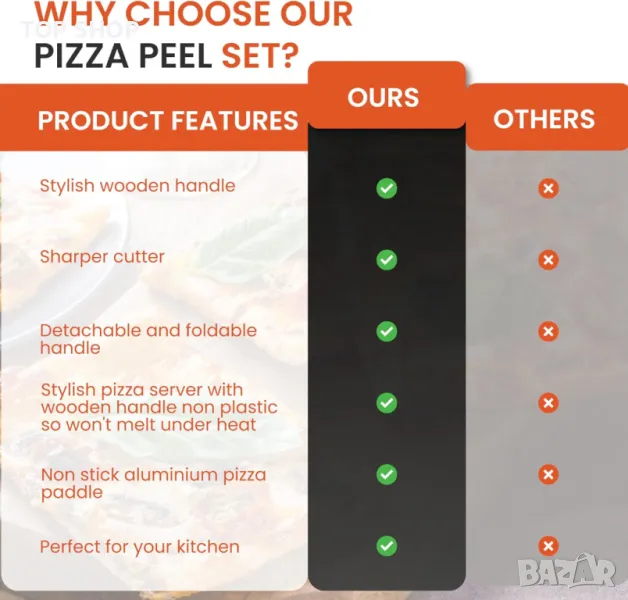 MYOTTPRO Алуминиева кора за пица, Включен скрепер и четка