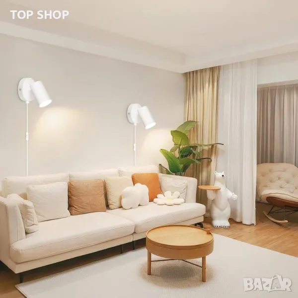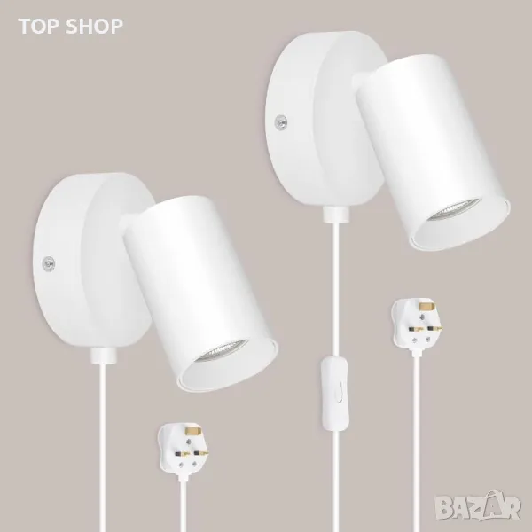 TaFiCo 2 бр. модерна бяла стенна лампа с щепсел - GU10, регулируема на 350° - 7 W