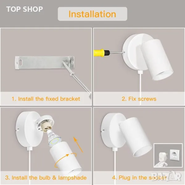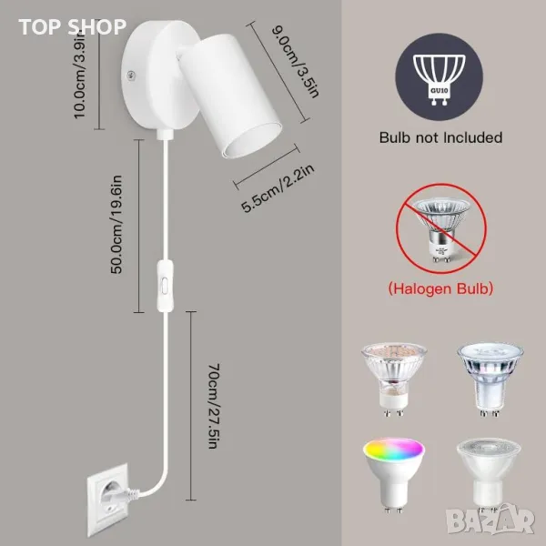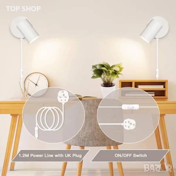 Този комплект от 2 стенни лампи с щепсел разполага с 1,2 м захранващ кабел и лесен ключ за ВКЛЮЧВАНЕ/ИЗКЛЮЧВАНЕ за удобно управление. Изработени от висококачествен метал с матирано черна повърхност, те са устойчиви на влага и ръжда. Стенните аплици могат да се въртят на 350° наляво и надясно и на 90° нагоре и надолу, за да осигурят идеалния ъгъл на осветяване. Всяка лампа има основа GU10, поддържаща максимум 7 W на фасунга и включва дишащ, подвижен абажур за разсейване на топлината и лесен монтаж на крушката (крушките не са включени). Осветителните тела се доставят с комплект за монтаж и ръководство за потребителя, което ги прави лесни за монтиране на стени в различни закрити помещения като спални, всекидневни, кухни, трапезарии, офиси, кафенета, барове и хотели.