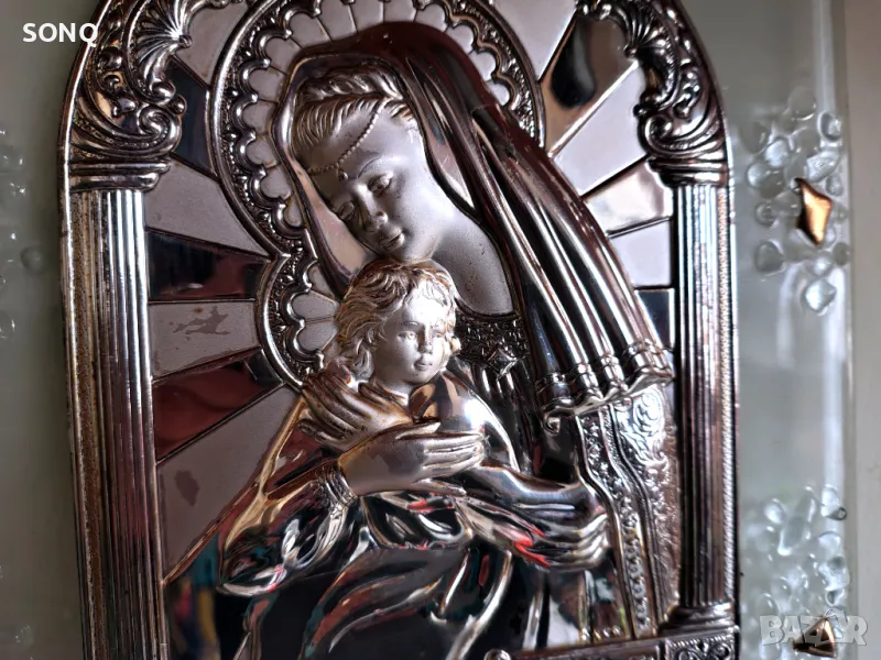 Прекрасна Сребърна Икона Върху Стъкло → Обява 49641043