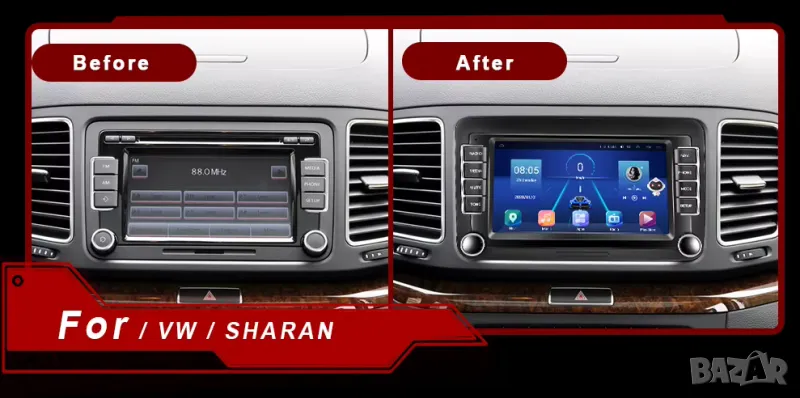Списък с марките и модели на автомобили, на които пасва тази мултимедия, има в края на публикацията. ОБЪРНЕТЕ ВНИМАНИЕ ДАЛИ ФОРМАТА НА ПРЕДЛАГАНАТА ОТ НАС МУЛТИМЕДИЯ ОТГОВАРЯ НА ОТВОРА НА СРЕДНАТА КОНЗОЛА НА АВТОМОБИЛА ВИ, ВГЛЕДАЙТЕ СЕ В ЪГЛИТЕ.