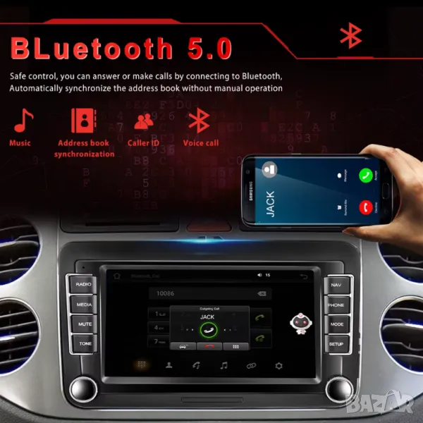 7. Bluetooth : Може да възпроизвежда стерео музика чрез Bluetooth от телефона си. Поддръжка за изтегляне на телефонна книга. Поддръжка за търсене в телефонния указател. За функция за разговори има и вграден микрофон.