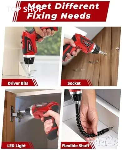 Нов DuroFort 8V Акумулаторен Винтоверт + 89 Аксесоара, LED, Гъвкав Вал