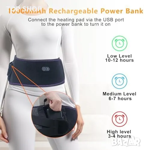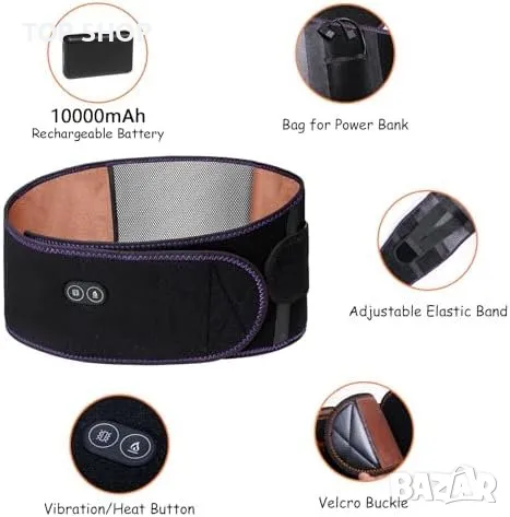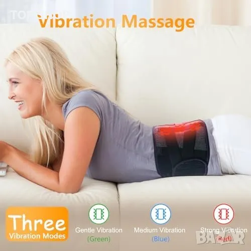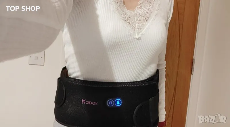 Иновативен отопляем колан с масажна функция: Предлага 3 режима на масаж и 3 температурни настройки за индивидуализиран комфорт.