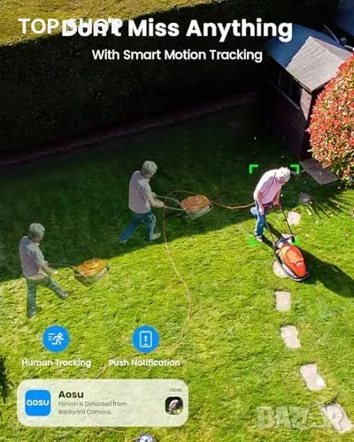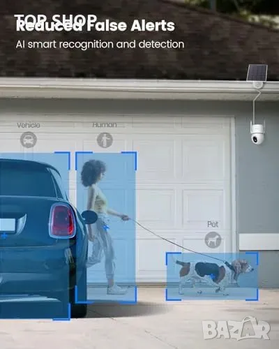 AI разпознаване: Засича хора, превозни средства и домашни любимци; интелигентно уведомяване.