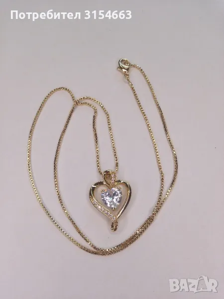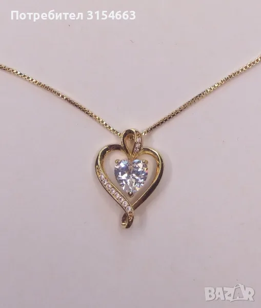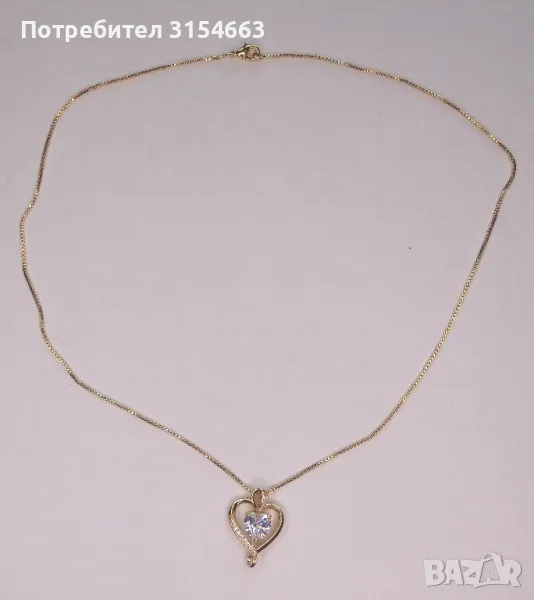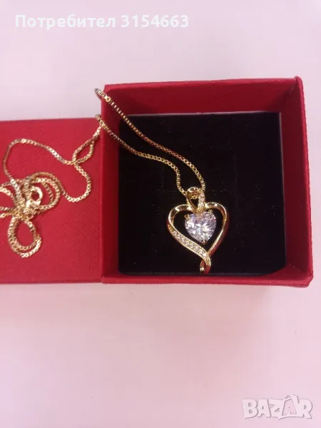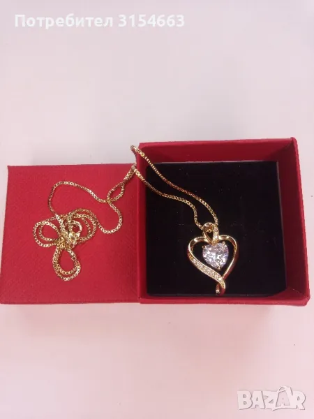 Колие с кристали. Форма на сърце. Размери на сърцето 1,6 см на 2,3 см. Дължина на верижката 46 см. С подаръчна кутийка.
