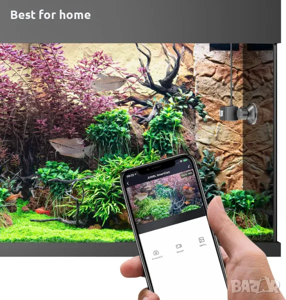 Ваканция, командировка или други отсъствия не са лесни за овладяване на собствениците на аквариуми. С JUWEL SmartCam всеки притеснен акварист може да следи всичко, независимо къде води пътуването. Удобно наблюдение, правене на снимки и видеозаписи по всяко време и незабавното им споделяне, плюс лекота на използване - тази интелигентна подводна камера предоставя прозрения в реално време чрез поток на живо и позволява бързи реакции при спешни случаи. За ежедневието професионалистите препоръчват: съзерцавайте, наслаждавайте се и релаксирайте!.