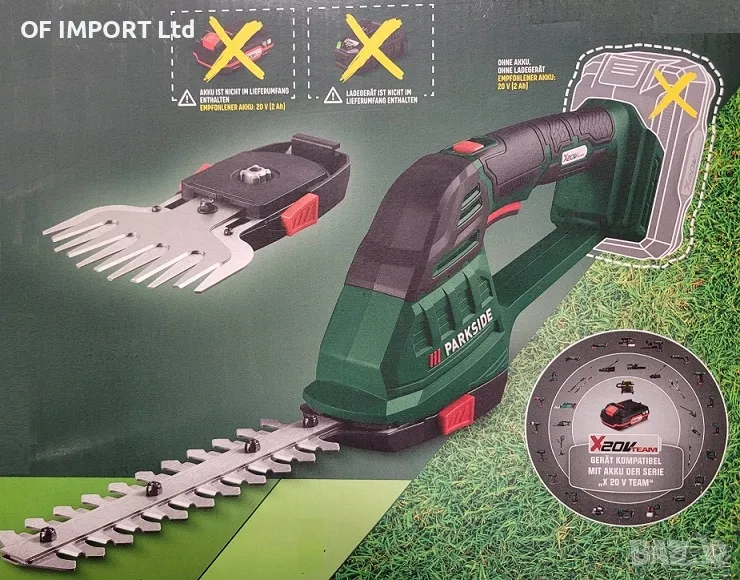 Акумулаторна Комбинирана Ножица За Трева и Храсти PARKSIDE 20V Li-Ion PAGS 20-Li A1