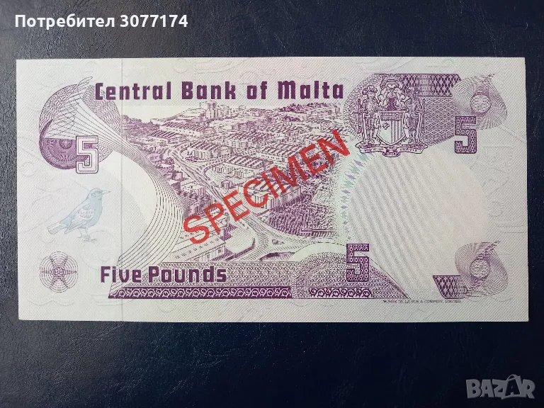 Спесимен Малта 5 лири , снимка 1 - Нумизматика и бонистика - 49644439 Спесимен Малта 5 лири , снимка 2 - Нумизматика и бонистика - 49644439 1/2