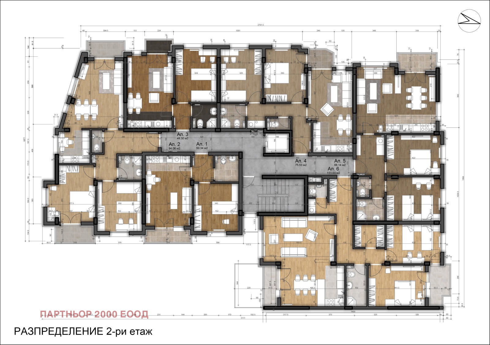 В сградите има апартаменти със застроена площ от 77 кв.м. до 120 кв.м.